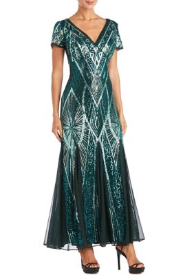 R M Richards Women S Long Sequin Beaded Cap Sleeve Dress With Godet Inset Belk
